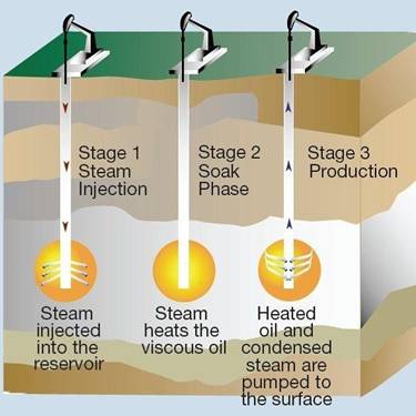 SAGD 就是蒸汽驅開采方式,即向注汽井連續注入高溫、高干度蒸汽,首先發育蒸汽腔,在加熱油層并保持一定的油層壓力(補充地層能量),將原油驅至周圍生產井中,然后采出。