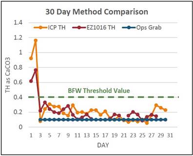 經過幾個月的運行,現場人員的反饋表明,該系統運行良好、可靠。操作人員和管理團隊在總硬度超過 0.4 mg/L 限值時修改水處理工藝和蒸汽生產。在采出水再利用和鍋爐給水應用中,現場人員能夠實時監測蒸汽鍋爐的關鍵給水質量,并根據監測數據做出決策。
